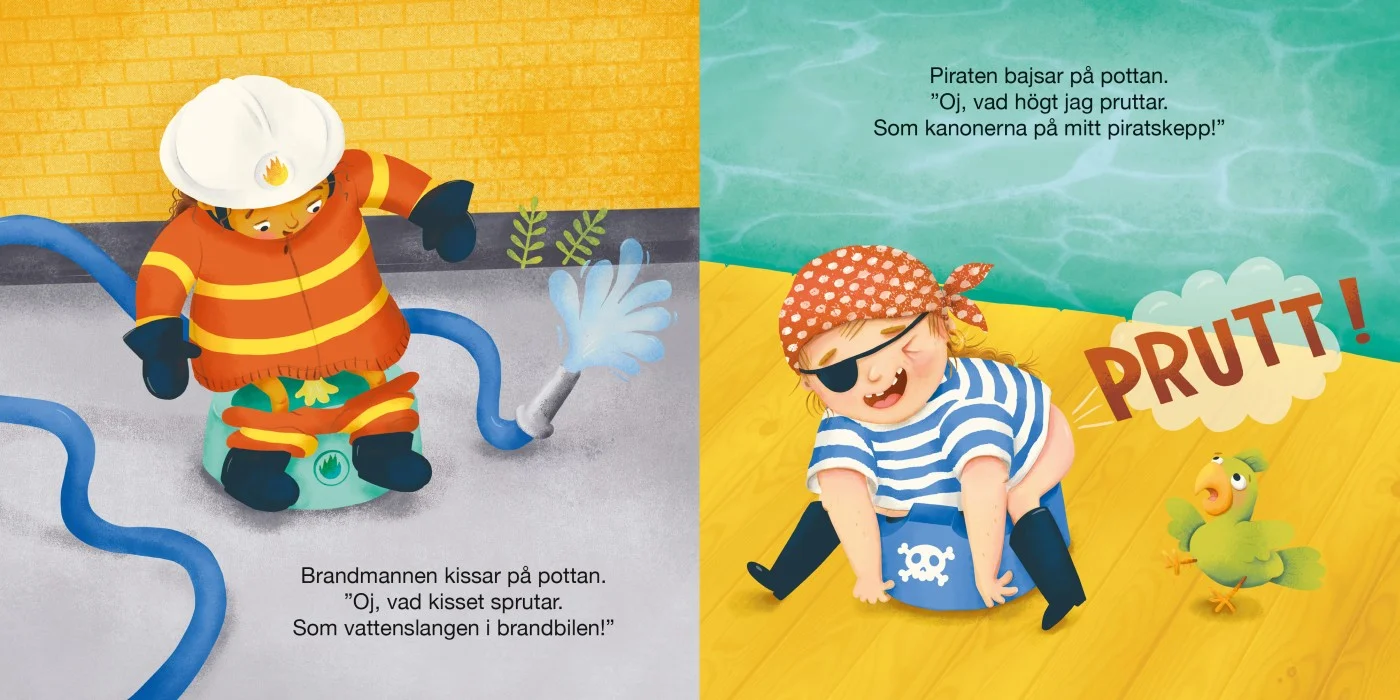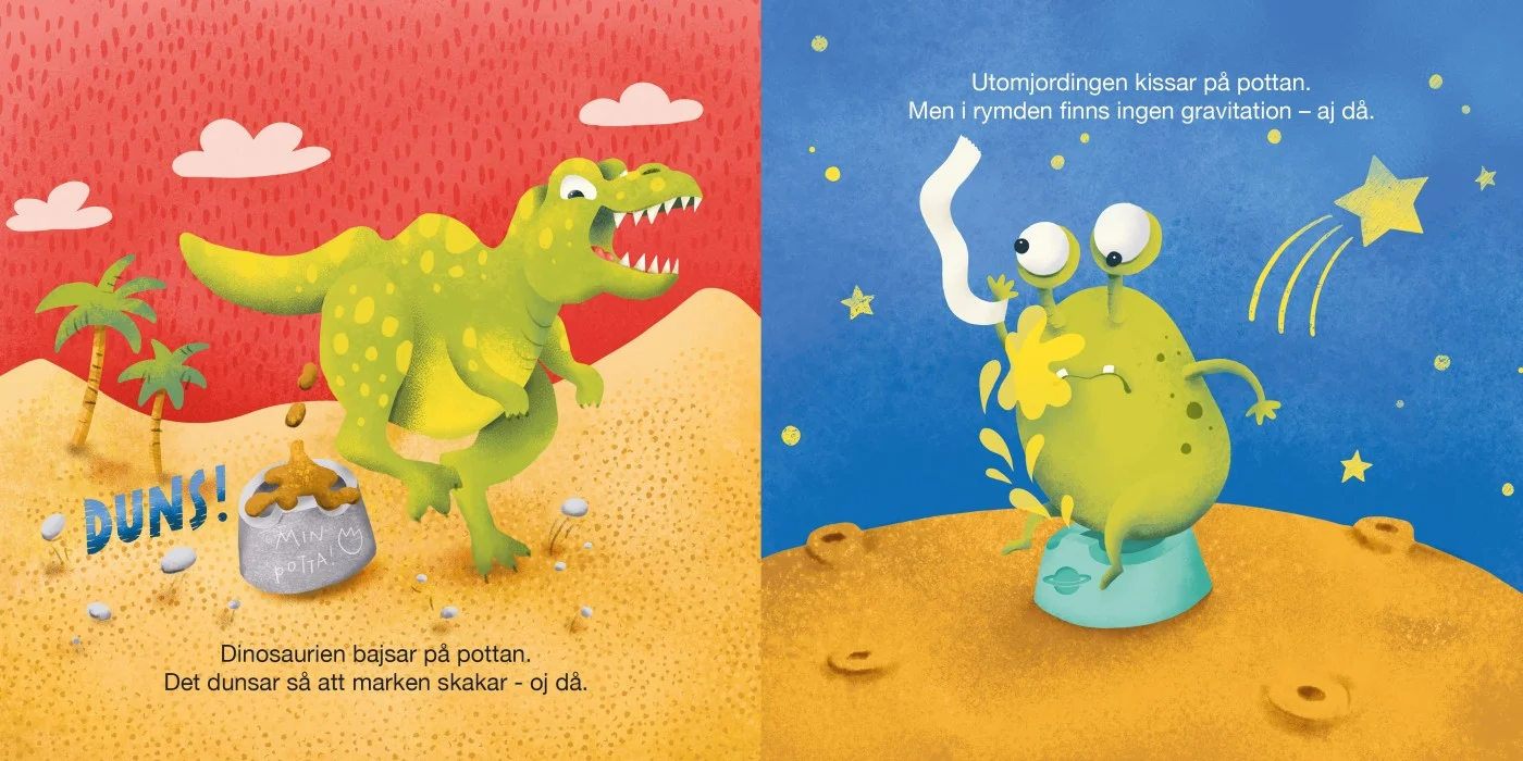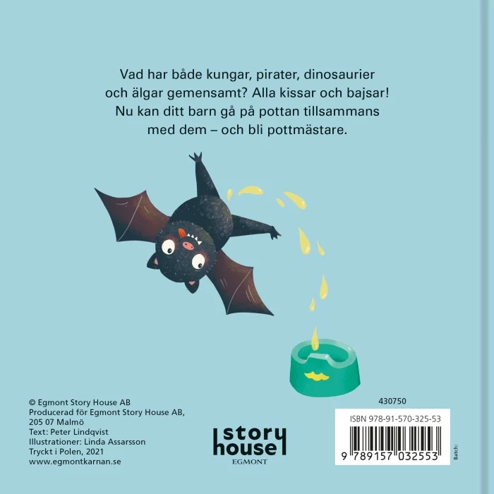 Vad har både kungar, pirater, dinosaurier och älgar gemensamt? Alla kissar och bajsar! Nu kan ditt barn gå på pottan tillsammans med dem och bli pottmästare.