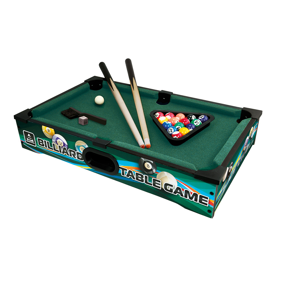 Möt kompisar och familj över en omgång biljard! Detta spel är ett uppskattat sätt att umgås på, här i en minivariant som lätt ryms i vardagsrummet eller på köksbordet. Settet innehåller allt du behöver för att spela, det är bara att ställa fram det på bordet och köra igång! Tack vare bordets låga vikt går det alldeles utmärkt att ta med sig spelet när du blivit bortbjuden, eller varför inte överraska vännerna i parken eller på stranden.