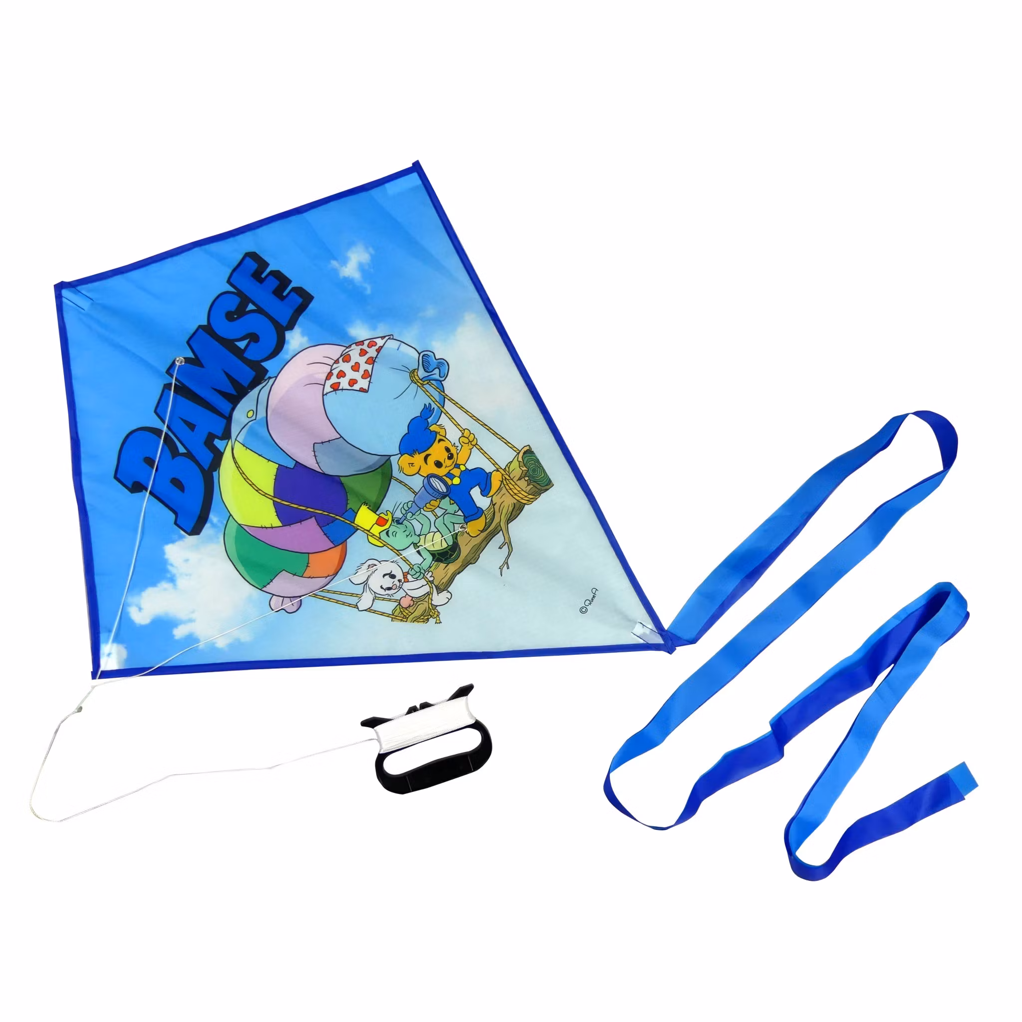 ”SportMe Bamse på äventyr” är en klassisk, diamantformad leksaksdrake (ca 60×70 cm) med motiv av Bamse och hans vänner, utrustad med två svansar och 40 meter lina. Den är utformad för att vara lätt att flyga för barn från 4 år och uppåt, perfekt för lek utomhus i vinden