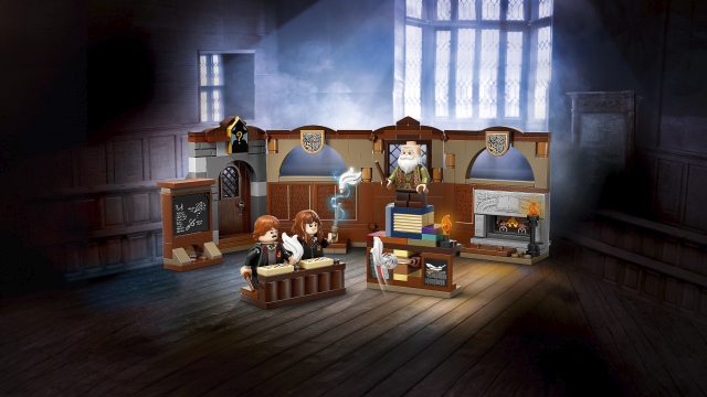 • Trollkarlsleksak för barn – Återskapa en trollbindande klassrumsscen från Harry Potter och de vises sten™ med leksetet LEGO® Harry Potter™ Hogwarts™ slott: lektion i trollformellära