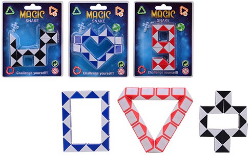 Denna magiska orm är ett färgglatt roterande pussel med oändliga möjligheter. Genom att rotera och skjuta de färgade segmenten kan du förvandla pusslet till en ny form varje gång. Från enkla former till kreativa designer: allt är möjligt!