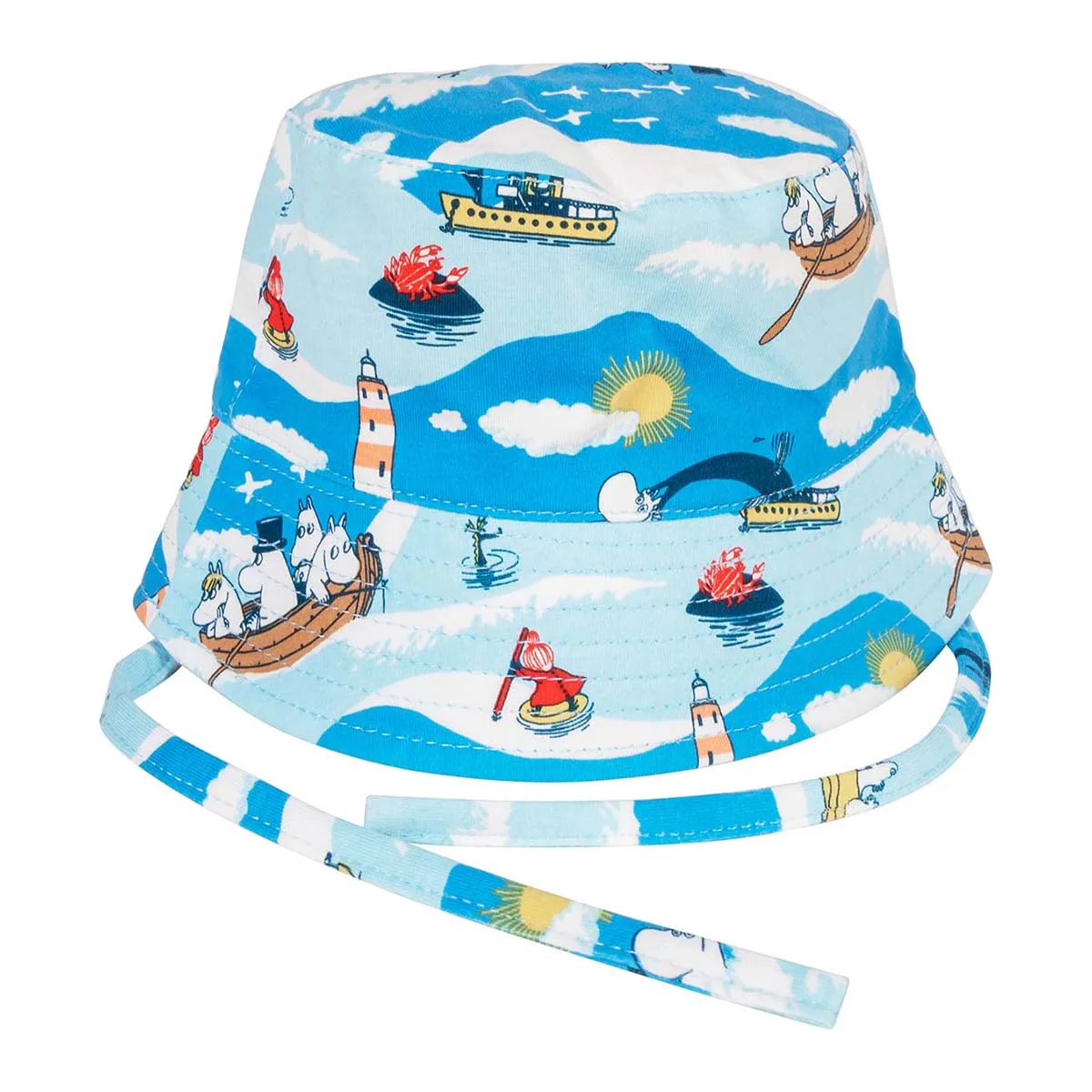En mjuk och skön Mumin solhatt för baby. Solhatten har knytband under hakan som håller den på plats. Produkten innehåller certifierad ekologisk bomull. Öko-tex.