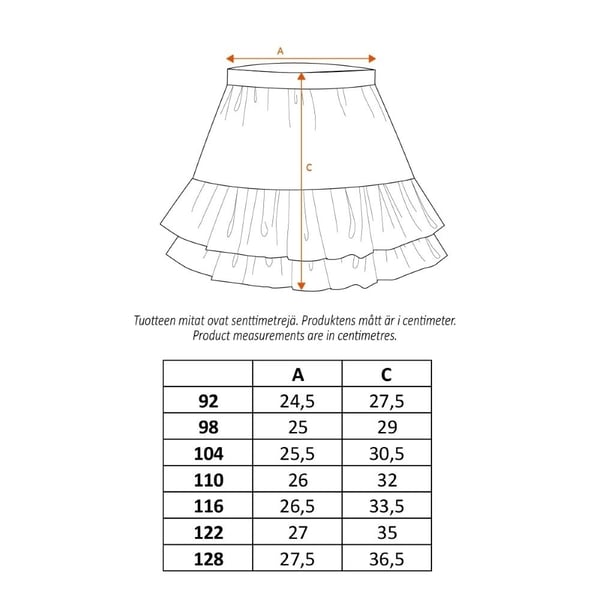 Infälld resår i midjan och dubbel volang i kjoldelen.