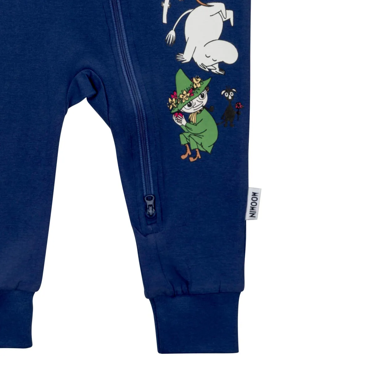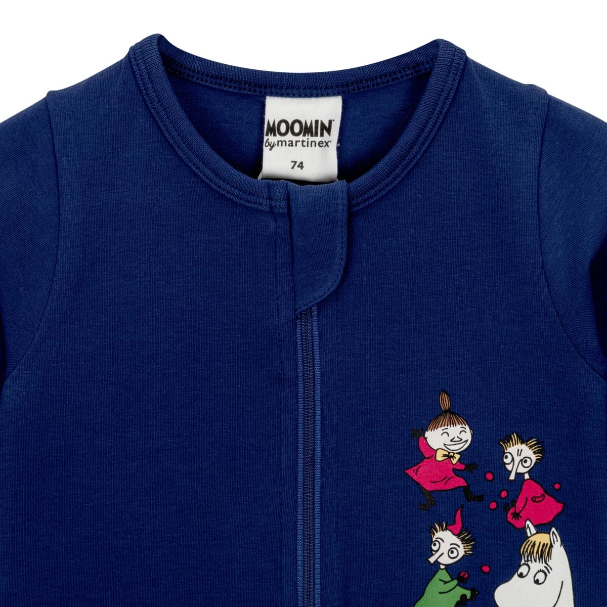 n mjuk och skön Mumin pyjamas för baby. Med långa ärmar och långt tvåvägsblixtlås för lättare påklädning. Tillverkad i mjuk och elastisk bomullsblandning. Öko-tex