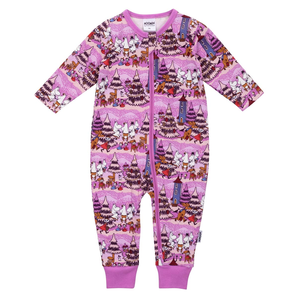 En mjuk och mysig Mumin pyjamas för baby. Med långa ärmar och ett långt tvåvägsblixtlås för lättare påklädning. Produkten innehåller certifierad ekologisk bomull. Öko-tex.