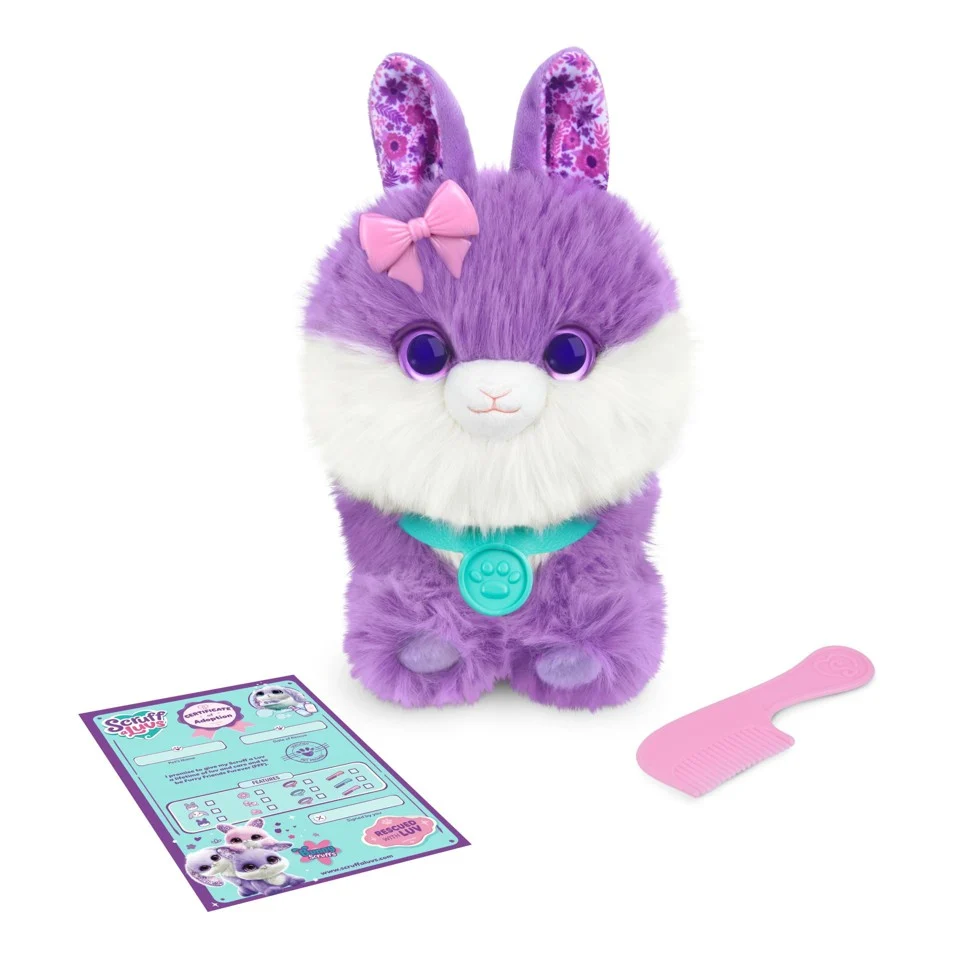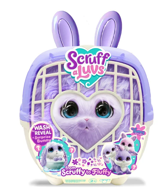 Rädda ett Scruff-a-Luvs-husdjur! Ge det ett bad och avslöja vem du har räddat! Torka den, borsta den och styla den vackert. Vilken lilafärgad söt kanin räddade du? Innehåller 3 lila kaninvarianter. Ålder 2+.