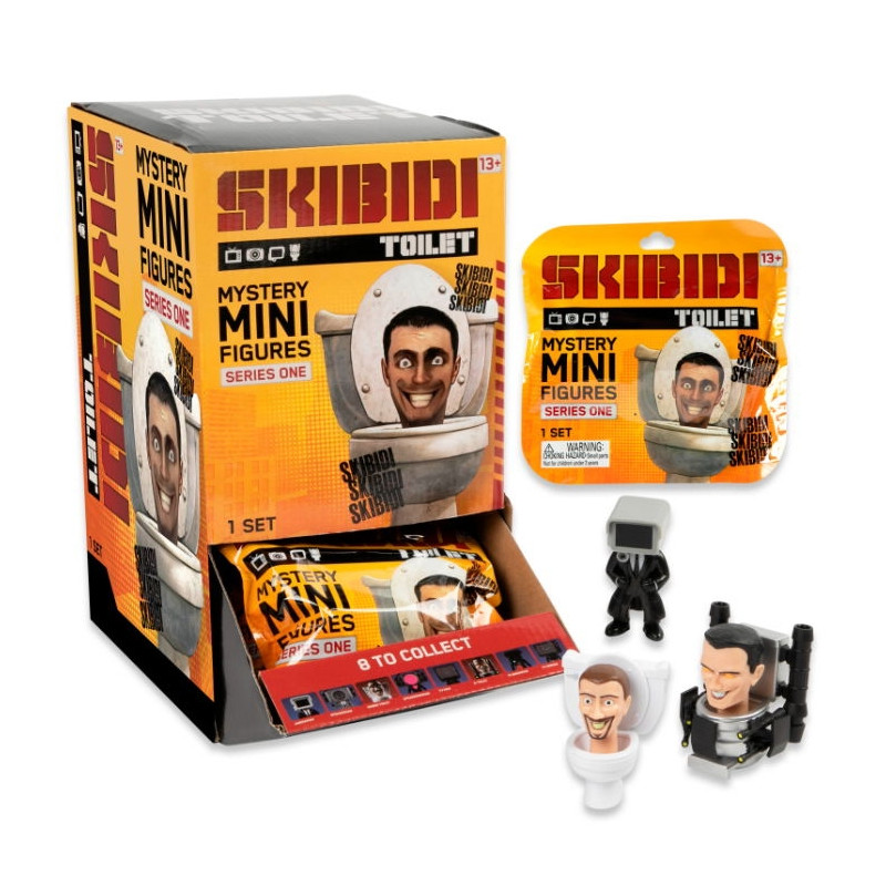 Innehåller en hemlig figur. Vilken får du veta först när du öppnar förpackningen. Det finns totalt 8 olika figurer du kan få i serie 1 (TV Man, Skibidi Toilet, Cameraman, Speakerman, G-Toilet, Speakerwoman, TV Woman eller Plungerman).