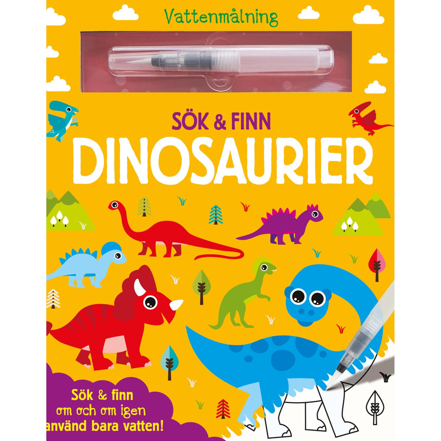 I den här roliga vattenmålarboken skapas färgglada bilder på dinosaurier som gömmer sig på sidorna.