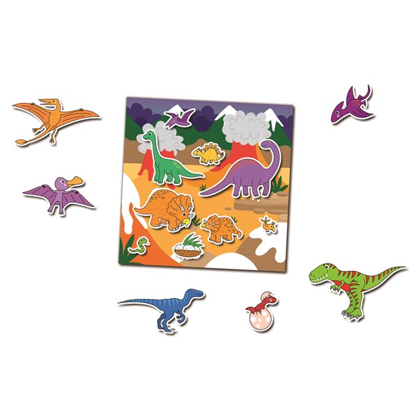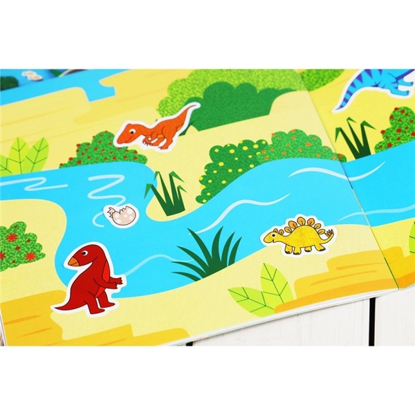 En klistermärkesbok med 150 återanvändbara klistermärken från dinosauriernas värld. Placera ut dem och flytta runt dem på de 7 färgglada bakgrunderna. Stickersboken går att använda om och om igen och är perfekt att ta med på resan. Bokens storlek är 21 x 21 cm. Ålder 3+