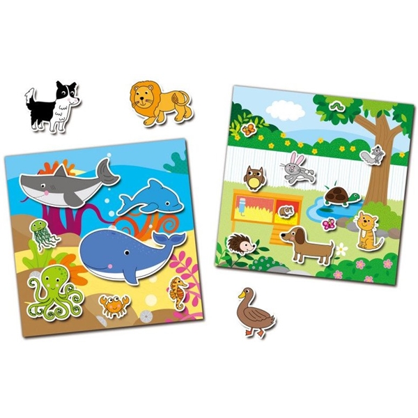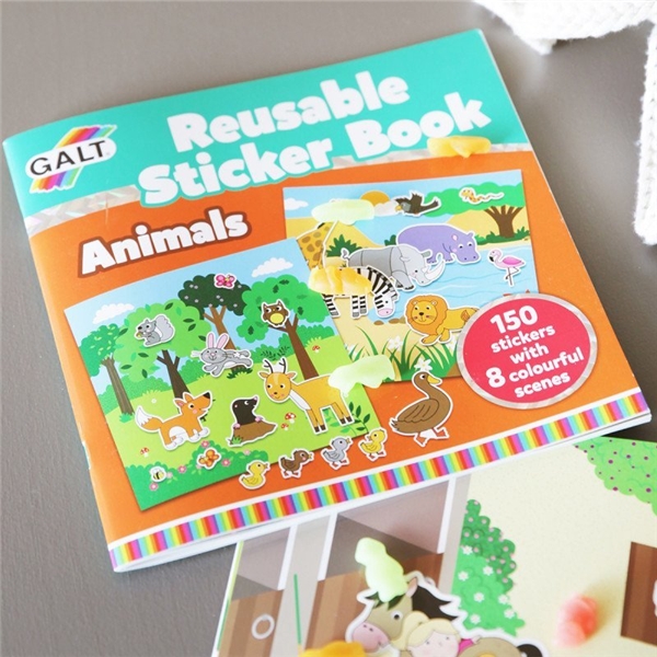 Stickerbok Djur är en rolig pysselbok med återanvändbara sidor med söta djur. Boken har 150 klisterbilder som kan användas om och om igen och 8 färgglada landskap att klistra på. Stickersboken är perfekt att ta med som underhållning på resan.