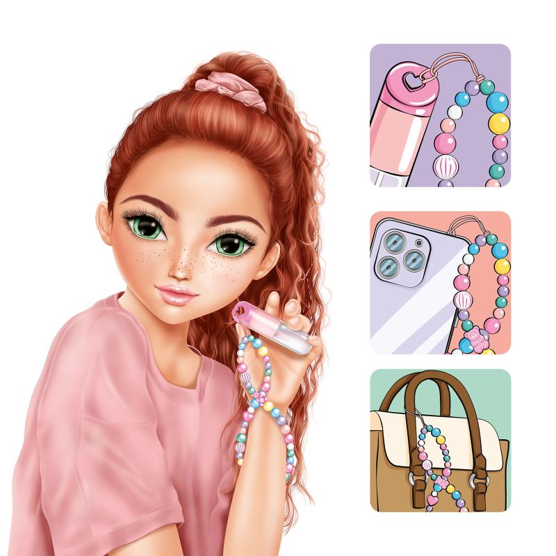 Detta söta set innehåller ett rosa läppglans i en liten glasflaska med ett fint TOPModel-motiv samt ett trendigt färgglatt pärlhänge. Hänget kan fästas i den hjärtformade fördjupningen i plastlocket men även pynta dina väskor, ryggsäckar eller mobilen. Läppglanset har en underbar doft av blåbärskaka, är dermatologiskt testad och glutenfri. Innehåll: 3 ml