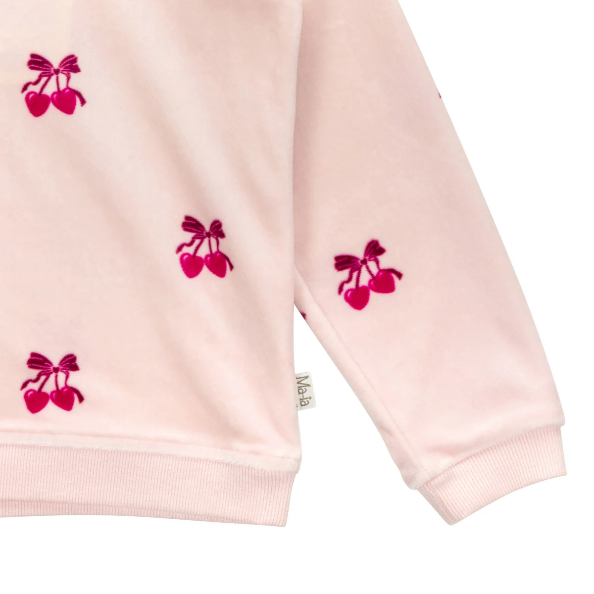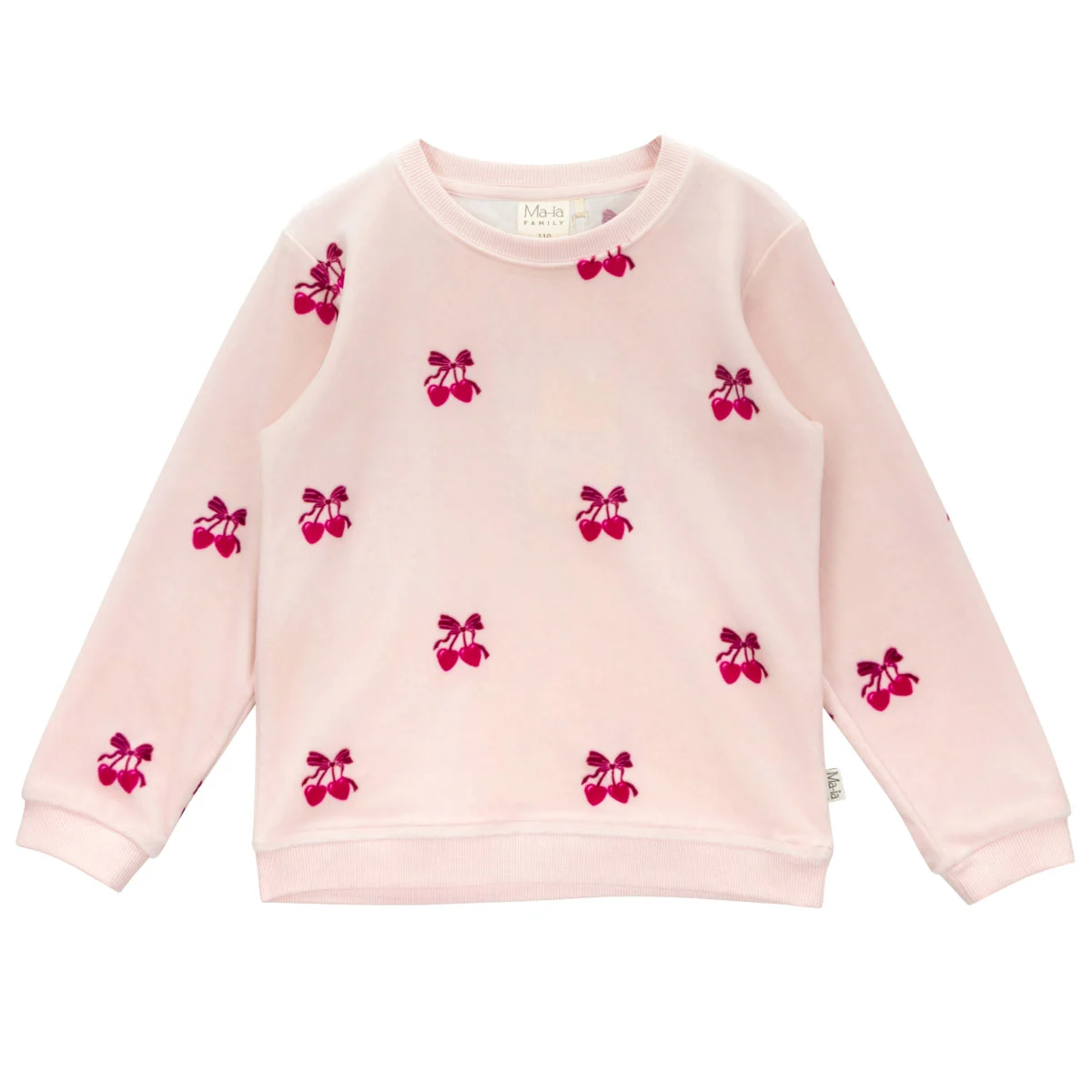 En supermjuk och vacker velourtröja för barn. Tröjan har lång ärm, rund halsringning och muddar i nederkant och ärmslut. Tillverkad i återvunnen polyesterblandning. Öko-tex.