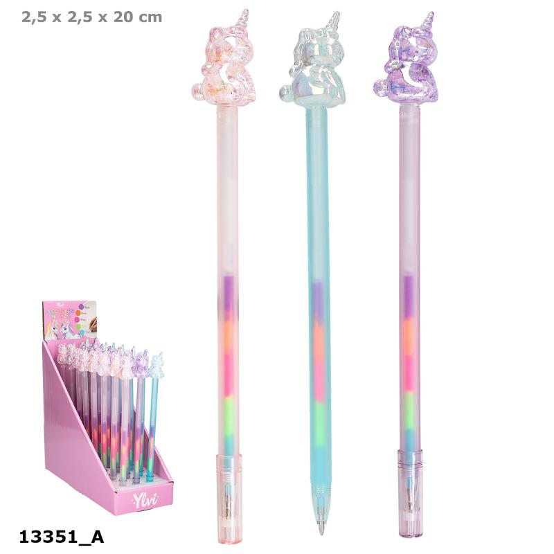 Vilken magisk blandning: dessa Ylvi gelpennor med en fantastisk enhörningstopp är fyllda med fem olika färger. Du kan se den magiska effekten när du skriver! Finns i tre färgkombinationer: rosa, blått och lila.
